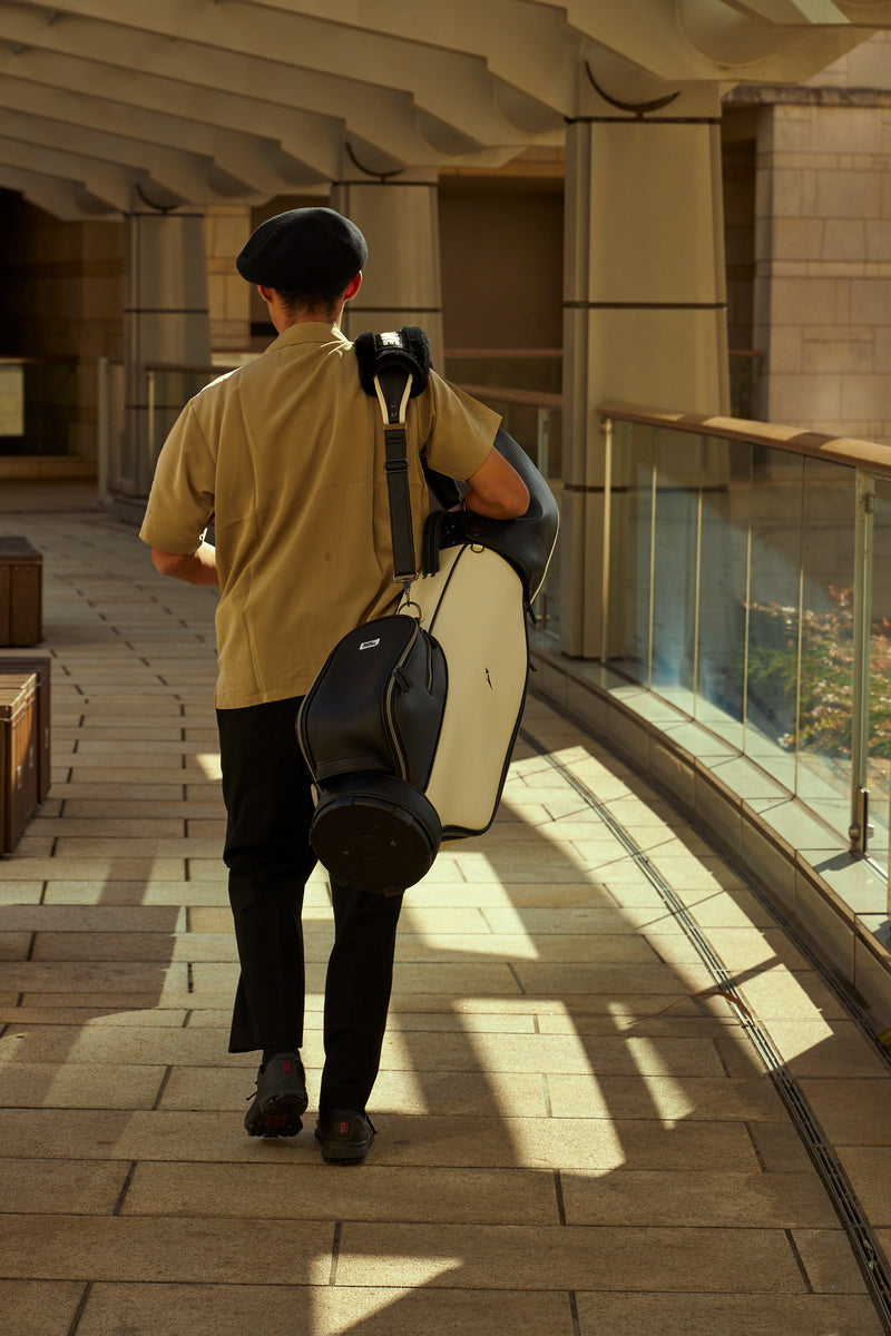 MONO CHROME2023 AW ピン型 パターカバーモノクロームを象徴する、カラーリングにロゴをワンポイントに! Detail カラー:ブラック オフホワイト 素材:合成皮革 Size ピン用 パターカバー
